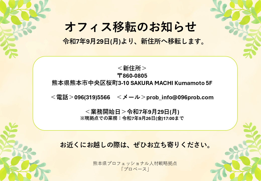 ★業務開始日★令和7年9月29日(月) ※現拠点での業務:令和7年9月26日(金) 17:00まで